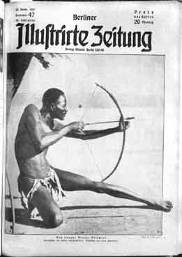 Links: Titelblatt der "Berliner Illustrirten Zeitung", 1927, Heft 47, mit einer Titelfotografie von Hugo Adolf Bernatzik.